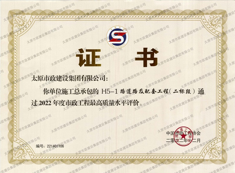 2022年度市政工程最高質量水平評價_H5-1路道路及配套工程(二標段)